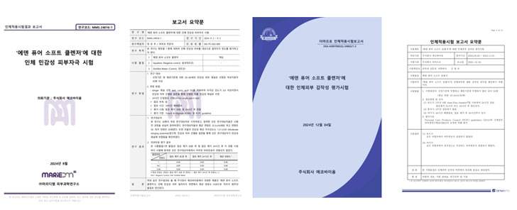 <피부자극 시험 보고서 및 인체적용시험 보고서>